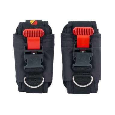 The 20 lb Quick Buckle (QB) Weight Pockets consist of an insert pocket that easily releases when the handle is pulled and a holster that stays securely on the waist belt. Designed for use on the TransPac harness or any other harness using 2-inch webbing, they can be worn vertically or horizontally with each pocket holding up to 10 lbs of weight securely in position throughout the dive.