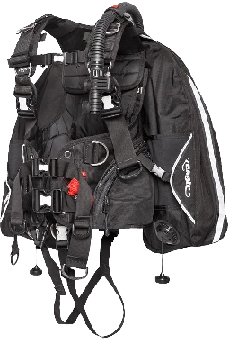 It is based on the Tech BC platform, with a twin buckle front closure, but has additional features. These include SOLAS standard symbols on buckles, reflective trim on the bladder, additional D-rings, pockets for long octopus hose storage on each bladder wing, and an included split saddle harness.