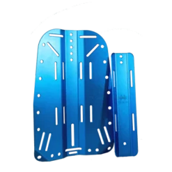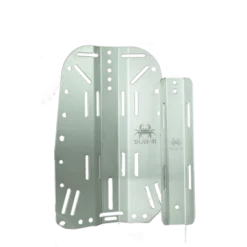 The Aluminium Backplate (3mm, 0.11″) is crafted from the type 6061 marine grade aluminium and finally anodised, in order to provide surface protection. All mounting holes; included the longitudinal; are chamfered to avoid sharp edges and damage to the user equipment. The backplate comes with the single tank adapter.