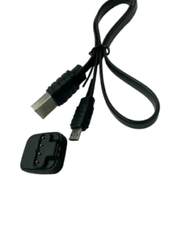 Aqualung i330R is delivered with a , the same as most Android smartphones, which is connected to an adapter that you place between the case and the strap of the dive computer where you see 4 metallic circles. The adapter and these connectors are magnetic, so they stick together.
