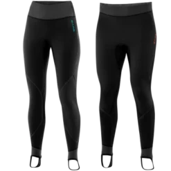 These versatile pants are high-cut with a neoprene waist band and include foot stirrups to keep them in place. Team them up with any top or vest for additional protection.