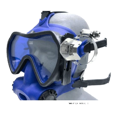 The Spectrum Accessory Bracket allows a diver to mount most (round) 3rd party lights to the side of the Spectrum Full Face Mask. This is great for night dives or anytime where additional light is required! If you purchase one of our Combination Mounts of as well, you can mount a GoPro Camera and a dive light to the same bracket! The Spectrum Accessory Bracket allows for two mounting positions : high or low. The Bracket is available with a universal adapter or sold alone.