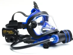Voice Menu: When you submerge with a D2 Buddy Phone, you will hear the voice system say “Buddy Phone ON, frequency A (B), channel one (four), volume High (Medium, Low),” depending on the prior dive’s settings. Changing a setting is easy and can be done underwater. Depress the Push-to-talk switch (PTT) three times quickly and hold the third depression until you hear “main menu – volume, channel, continuous transmit.” When you hear the main menu selections, simply depress the PTT to select one of the choices. The unit will make the selection and go back to the receive mode. If you don’t make a selection after the menu repeats twice, the D2 Buddy Phone goes out of the main selection menu and back to the receive mode (see operator’s manual for a more detailed explanation — note: continuous transmit mode allows the user to talk, hands-free. This was requested by many movie makers and scientists who talk on camera often).
