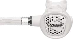 This premiere travel regulator packs maximum performance into minimum space. A true featherweight second stage, the compact is built from lightweight techno-polymers to eliminate jaw fatigue. Easy to pack and easy to dive, the compact includes dive/pre-dive venturi switch for managing freeflow and maximizing performance at depth.