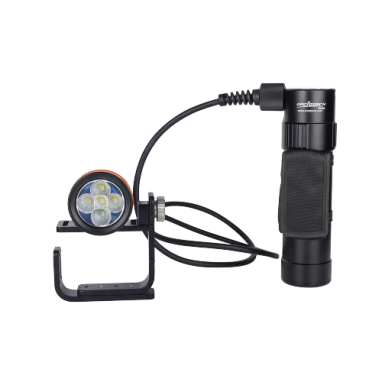 OrcaTorch D630 V2.0 is a perfect canister dive light for cave diving, wreck diving or similar technical diving activities. The light delivers up to 4,000 lumens, and its angle adjustable cable allows both 90°and 180° rotation between the canister and light head. This makes the OrcaTorch D630 V2.0 perfectly suited for both side mount and back mount diving. Its large-capacity battery pack provides up to 5 hours of excellent diving experience at the brightest mode. The battery pack can also be taken out and used as a power bank