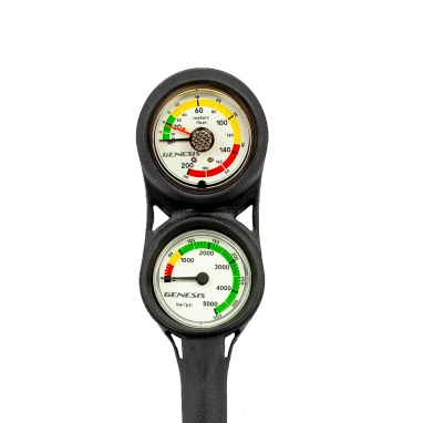 Two Gauge Console. Dual Scale DG and PG. 200FT/60M Depth Gauge. 5000psi/350BAR Pressure Gauge. 1.75” diameter.