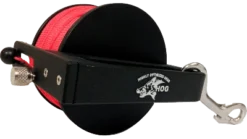 The Hog Recon Dive Reel makes it easy to switch from hand to hand and reel in your line. You have the option of either 200′, 400′, or 800′ #24 orange line with an extra large stainless steel double end bolt snap. The core is made of delrin bolted to an aircraft grade aluminum handle using a one piece stainless steel shaft and is controlled by a stainless steel lockdown screw.