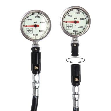 – Add to any pressure gauge, console or air integrated console which uses a standard high pressure hose