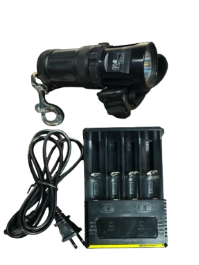 An integrated microprocessor control unit continuously monitors battery voltage and temperature to keep the light operating at peak efficiency. As battery voltage drops, light output steps down eliminating the possibility of suddenly being left in the dark due to a dead battery. The light alerts the diver of this step down in light output by a series of flashes, after which, the light produces a minimum of another 4+ hours of usable light.