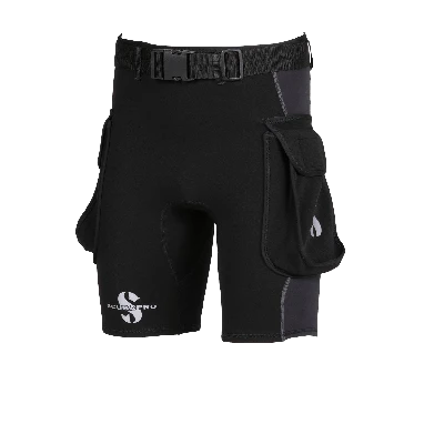 Comfortable and stretchy, Hybrid Cargo Shorts form-fit to your body like you were born wearing a pair. Made from a mix of quality 1mm neoprene and nylon, on the inside a micro-plush lining makes the shorts warm and cozy. This plush lining absorbs less water, increasing overall warmth, plus dries quickly. The updated design features a new adjustable waist belt that replaces the prior drawstring. The belt threads through a series of belt loops and includes an easy-to-use male/female squeeze buckle closure. A new anti-abrasion fabric on the seat panel enhances durability, and the two large cargo pockets are handy for carrying money, sunglasses or other accessories when enjoying a day on the beach or dive boat. Hybrid Cargo Shorts are designed to be worn either by themselves or over a dive suit.