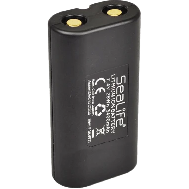 Rechargeable lithium ion battery (7.4 volt, 3400 mAh, 25Wh) for Sea Dragon Fluoro-Dual Beam, 1200, 1500, 2000, 2100SF, 2300 Auto, 2500/3000 Photo/Video/Dive Lights. Includes protective cap.