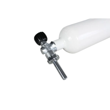 The silencer is attached to the tank valve and the old air can then be discharged within a few minutes, even in a closed room or onboard a boat, for example. Thanks to this effective silencing, noise does not exceed a level that would make conversation difficult in close proximity to the tank.
