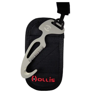 Lightweight Titanium line cutter. Velcro closure and either vertical or horizontal mounting options onto your harness