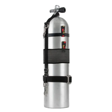For 7-inch diameter tanks. Comes with a tank choker for sidemount divers who use a stage strap set up on their bottles. Strap is easily disassembled and re-assembled, giving the abiltiy to add or remove hose retainers as needed.