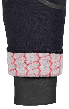 The 5mm and 7mm jumpsuits feature the Aqua Lock® zipperless wrist and ankle cuffs which have been designed to mate perfectly with specially designed Aqua Lock® boots, gloves and hoods. The Aqua Lock® cuffs feature a soft and ultra-stretchy skin neoprene inner lining which mates to specially designed silicone seals inside the boots and gloves. 3mm suits also provide a great pairing with Aqua Lock® accessories but the double locking wrist and ankles have been removed since they are not required in warmer water temperatures where 3mm suits are commonly utilized.
